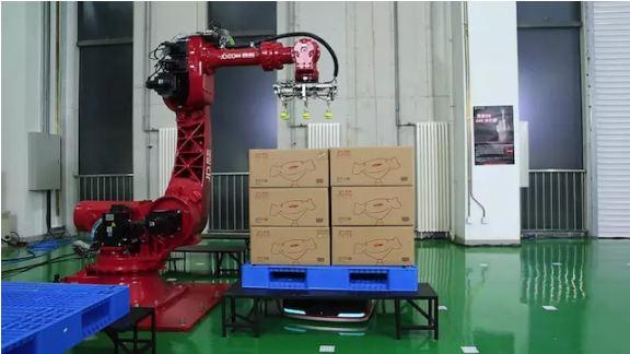 中國(guó)市場(chǎng)也有同樣的夢(mèng)想,2016年10月,京東開放參觀了其在北京亦莊的物流實(shí)驗(yàn)室,展示了其無(wú)人倉(cāng)方案中的AGV搬運(yùn)機(jī)器人和六軸機(jī)器人。AGV利用地上的二維碼進(jìn)行導(dǎo)航,六軸機(jī)器人則是利用吸盤重新碼放貨物,碼放速度可以達(dá)到每秒一個(gè)。分揀工作也是由六軸機(jī)器人來完成,識(shí)別貨物的環(huán)節(jié)還在試驗(yàn)當(dāng)中。