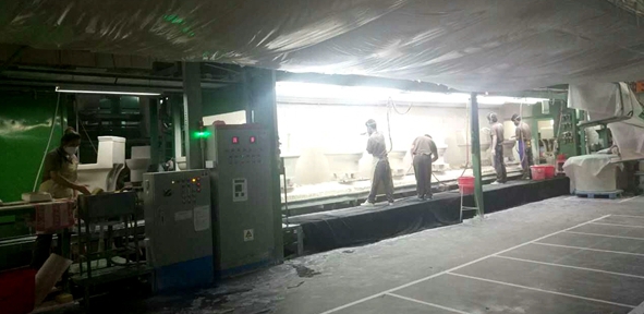 施釉工藝是古陶瓷器制作工藝技術(shù)的一種,是指在成型的陶瓷坯體表面施以釉漿的過程。在傳統(tǒng)衛(wèi)浴行業(yè)中,施釉工序全部由人工完成,用工成本高,生產(chǎn)效率低,產(chǎn)品一致性差。而且,由于操作工人長期處于惡劣工作環(huán)境下,員工的健康問題也令企業(yè)頭疼不已。
