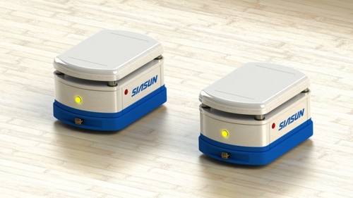 該公司的亮點產(chǎn)品在于其自主研發(fā)的定制四個麥克納姆輪的AGV機器人。