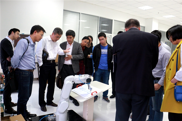 圖:企業(yè)代表觀摩杭州新松高精度輕量化4kg機(jī)器人