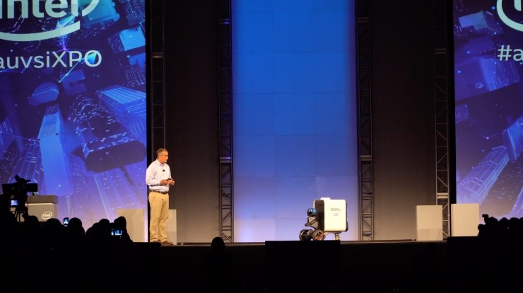 美國當(dāng)?shù)貢r(shí)間5月9日,在剛剛舉行的XPONENTIAL 2017大會(huì)上,Intel CEO 科再奇使用手機(jī)點(diǎn)了一瓶飲料,隨后,一個(gè)送貨機(jī)器人徐徐走上舞臺,科再奇使用手機(jī)上的密碼打開了機(jī)器人身上的箱子,取出飲料。