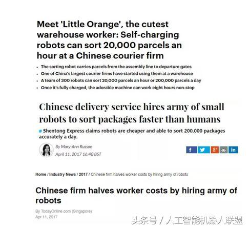近日,中國申通公司的“小橙人”機(jī)器人在倉庫工作的視頻被轉(zhuǎn)發(fā)到到外國社交網(wǎng)絡(luò)迅速爆紅,兩天點(diǎn)擊量超千萬,并且引起了包括每日郵報(bào)在內(nèi)的海外數(shù)十家媒體報(bào)道!
