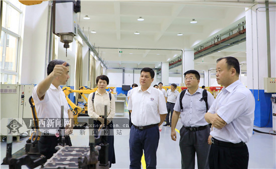 校企雙方在參觀工業(yè)機(jī)器人實(shí)訓(xùn)中心。