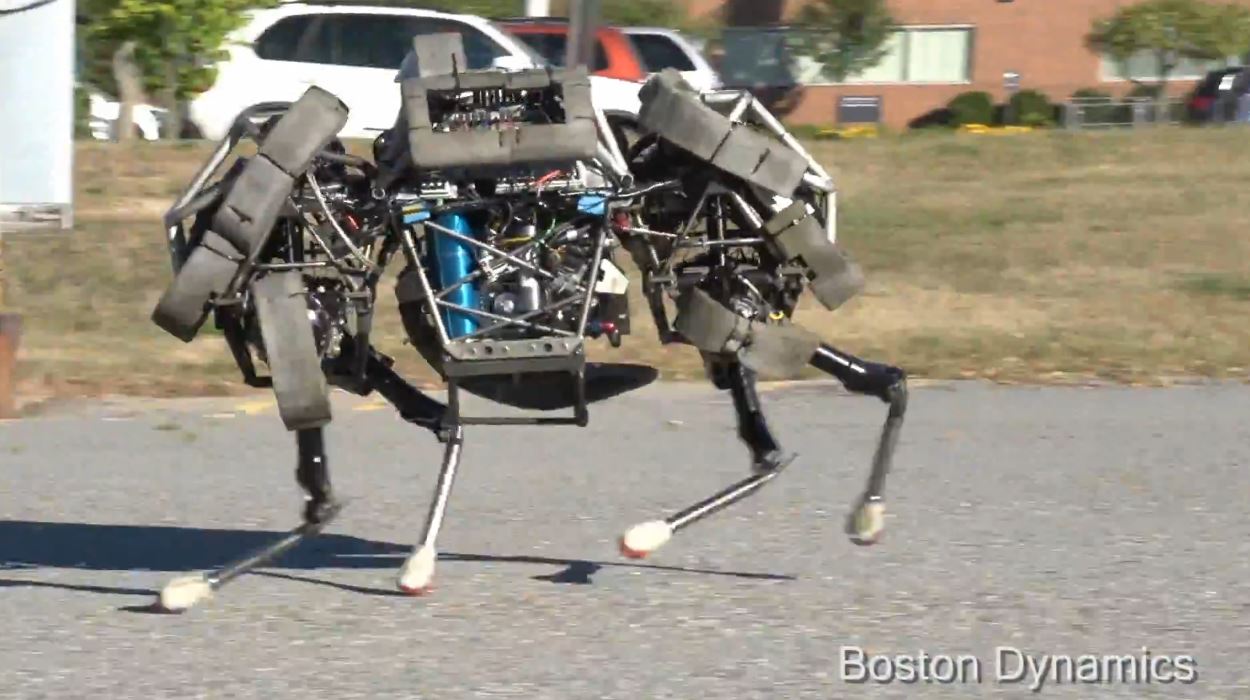 讓波士頓動(dòng)力聲名遠(yuǎn)播之作 。Big Dog 是一款能夠適應(yīng)復(fù)雜地形條件的機(jī)器人,能行走、奔跑、攀爬以及負(fù)載重物,由液壓系統(tǒng)驅(qū)動(dòng)引擎 。Big Dog 的四條腿和動(dòng)物一樣擁有關(guān)節(jié),可吸收沖擊,每邁出一步就回收部分能量,以此帶動(dòng)下一步。