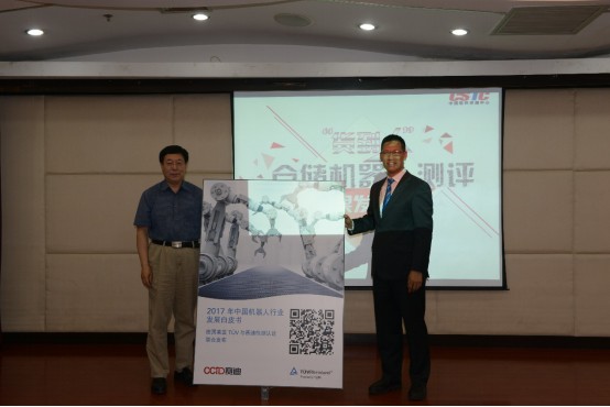 會議最后,中國評測與德國萊茵TüV集團聯(lián)合舉行了《2017年中國機器人產(chǎn)業(yè)發(fā)展白皮書》的發(fā)布儀式。