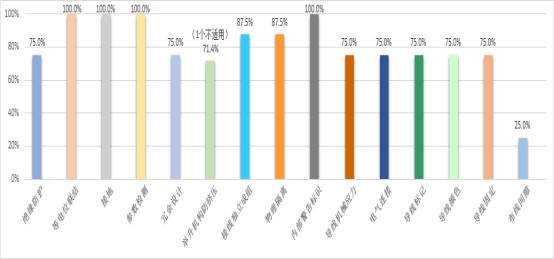 (2) 在電氣隔離防護方面,75%的產(chǎn)品絕緣防護措施不規(guī)范;87.5%的產(chǎn)品電氣系統(tǒng)和非電氣系統(tǒng)未采取物理隔離措施,動力線、控制線未獨立成組;