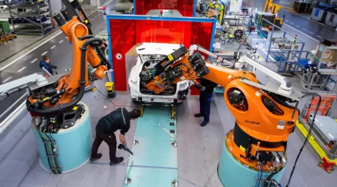 庫卡生產(chǎn)的橙色機(jī)械臂