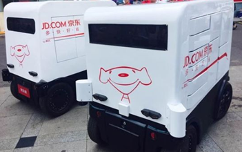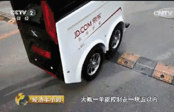 6月18日,央視的《經(jīng)濟(jì)半小時》報道了京東機(jī)器人配送,在中國人民大學(xué)順利完成首單配送任務(wù), 據(jù)相關(guān)介紹,此款移動機(jī)器人(AGV)在滿電的狀態(tài)下可行走約20公里,遇障礙物能自主規(guī)避,無人車頂?shù)募す飧袘?yīng)系統(tǒng)會自動檢測前方行人車輛,會自動停車避障,可攀登25度的上坡,載重量大約在500公斤,可通過京東APP、手機(jī)短信等方式通知收貨人,收貨人可輸入提貨碼打開配送機(jī)器人的貨倉,取走自己的包裹。