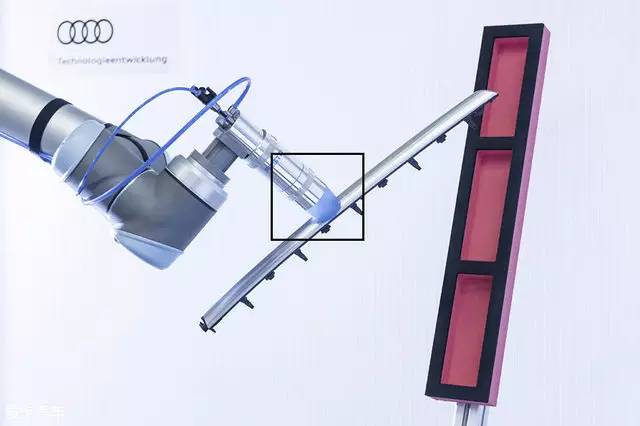 奧迪智能工廠發(fā)明的柔性抓取機器人不同于現(xiàn)階段的抓取機器人,該機器人最大特點在于柔性觸手,這種結(jié)構(gòu)類似于變色龍舌頭,抓取零件更加靈活。