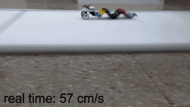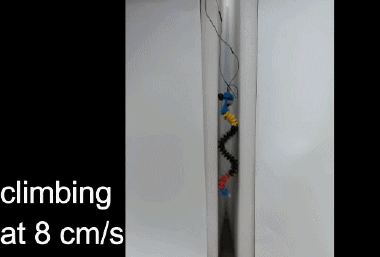 2016年的時候,在一個仿生相關(guān)的期刊上,研究者們發(fā)表了這個獨特的機器人設(shè)計點子。這個小家伙只需要一個電機就可以完成它的波浪式扭動,并且前進(jìn)速度還相當(dāng)快。一個較大的波浪機器人(如下圖)可以達(dá)到57厘米/秒的移動速度,鑒于它如此簡單的設(shè)計,這成績相當(dāng)不錯了。