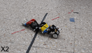 用這個波浪狀的結(jié)構(gòu)就可以實現(xiàn)前后的運動,然后再加上一對輪子,就可以轉(zhuǎn)向了:
