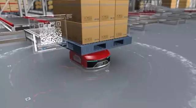 無(wú)人倉(cāng)中有大量貌似“掃地機(jī)”的機(jī)器人托著料箱有條不紊地忙碌著,這種AGV(自動(dòng)導(dǎo)引小車(chē))可通過(guò)地上的二維碼定位進(jìn)行導(dǎo)航,并結(jié)合系統(tǒng)的調(diào)度,實(shí)現(xiàn)了整個(gè)倉(cāng)庫(kù)的合理安排生產(chǎn)。相較于傳統(tǒng)的輸送線(xiàn)的搬運(yùn)方案,通過(guò)AGV實(shí)現(xiàn)“貨到機(jī)器人”的方式具有更高的靈活性。
