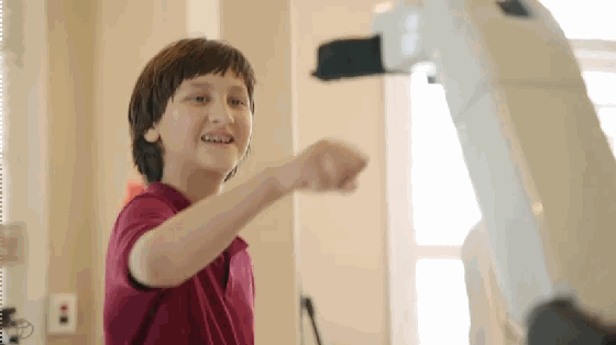 Romulo Camargo受傷之后,脖子以下都高位癱瘓,在測(cè)試的過(guò)程中,機(jī)器人幫他完成一系列的家庭任務(wù),包括開門、從食品柜中取水或零食等。豐田還專門展示了一段視頻,看到在機(jī)器人的幫助下,這位老兵很高興,就連他的兒子看到這位新伙伴,也很興奮。