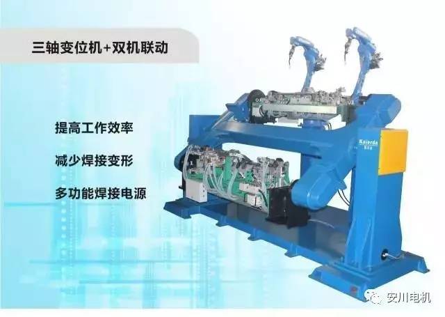 機器人雙機與三軸變位機協(xié)調(diào)動作,充分利用兩側(cè)工位進(jìn)行切換,有效提高用戶生產(chǎn)效率。同時,雙機對稱焊接減小了工件焊接變形,實現(xiàn)最佳工藝焊接需求。