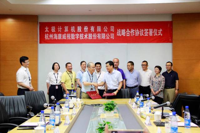7月1日,海康威視與太極股份在杭州舉行了戰(zhàn)略合作簽約儀式。??低暱偛煤鷵P(yáng)忠、太極股份總裁劉淮松,以及雙方20多位高管共同參加了此次儀式。