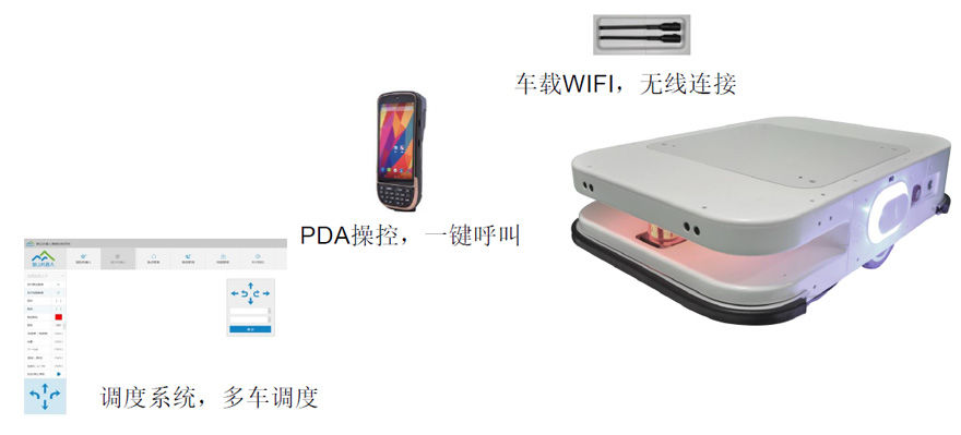與機(jī)器人配套的是智山MES智能調(diào)度管理系統(tǒng)APP,安裝在智山專用PDA上。工廠可根據(jù)實際的工藝流程,在MES服務(wù)器中設(shè)置好相關(guān)的工藝及步驟,定義好PDA(手機(jī))與工位的關(guān)聯(lián)。生產(chǎn)任務(wù)開始后,服務(wù)器通過收集到的信息(包括PDA呼叫)進(jìn)行搬運(yùn)機(jī)器人調(diào)度。服務(wù)器中統(tǒng)計整個生產(chǎn)進(jìn)行的狀態(tài)、任務(wù)的完成情況及各類數(shù)據(jù)的統(tǒng)計分析,總覽工廠運(yùn)行情況,方便把握生產(chǎn)運(yùn)行狀態(tài)。PDA(移動端)客戶端設(shè)計簡單明了,方便操作人員使用。