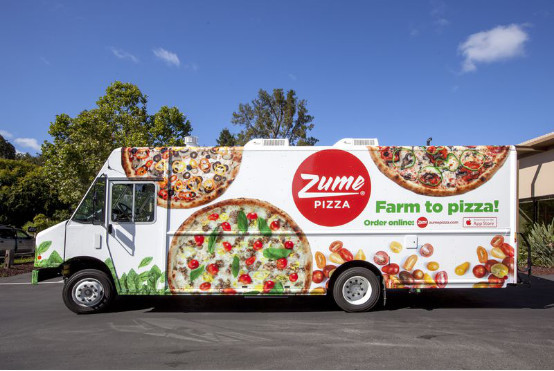 Zume Pizza擁有6輛特別設(shè)計(jì)的送餐車,每一輛車的大小和FedEx的卡車差不多。這些送餐車當(dāng)中都安裝了幾十個(gè)披薩烤箱,可對(duì)數(shù)百?gòu)埮_進(jìn)行持續(xù)加熱,從而保證了披薩的新鮮熱燙。正是因?yàn)檫@個(gè)原因,他們才能在20分鐘之內(nèi)將披薩送到顧客手中。