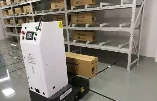 搬運(yùn)機(jī)器人將成品搬入倉(cāng)庫(kù)