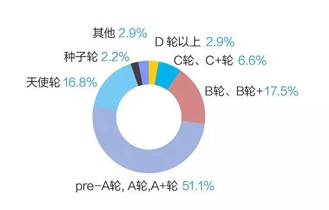 處于種子輪和天使輪的創(chuàng)業(yè)公司接近20%,超過半數(shù)企業(yè)處于Pre-A、 A、 A+輪,處于D輪以上的企業(yè)僅2.9%