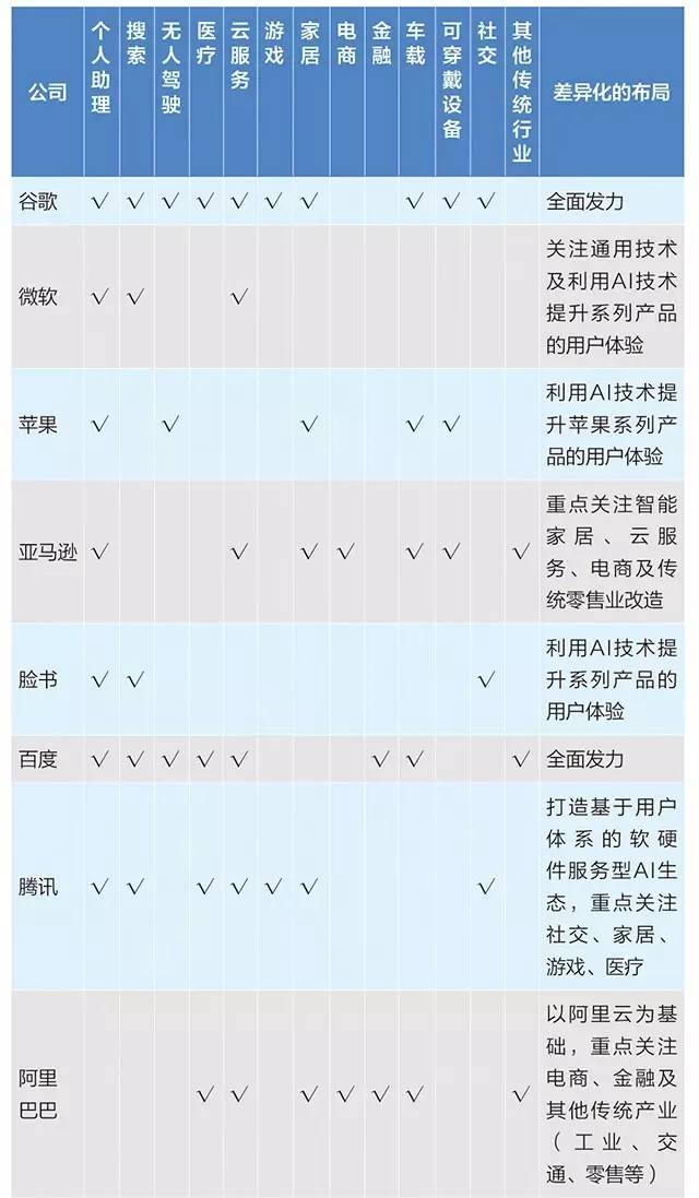 巨頭競爭的關(guān)鍵點(diǎn)是爭奪用戶的持續(xù)數(shù)據(jù)和軟硬件服務(wù)的入口。途徑一,針對開發(fā)者開源 AI 學(xué)習(xí)工具(平臺),得到反饋后,優(yōu)化自身的產(chǎn)品模型和用戶體驗(yàn);途徑二,利用自身優(yōu)勢,對各個垂直場景進(jìn)行滲透。目前備受巨頭追捧的應(yīng)用場景有智能家居、無人駕駛和智能醫(yī)療。