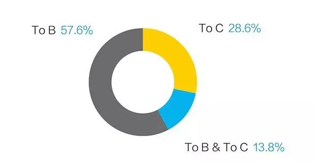 從服務(wù)對象來看,57.6%的企業(yè)面向B端客戶, 28.6%面向C端用戶,13.8%的企業(yè)兩者兼有