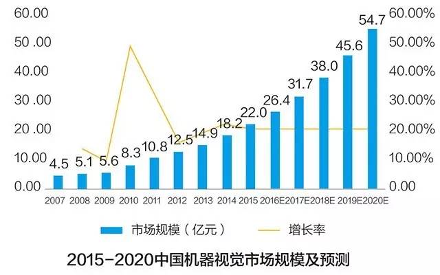 產(chǎn)業(yè)規(guī)模:2020 年中國機(jī)器視覺市場規(guī)模預(yù)計將達(dá)到54.7 億元人民幣