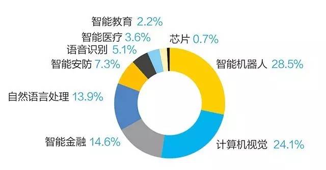 本次調(diào)研的290家人工智能創(chuàng)業(yè)公司,覆蓋了國內(nèi)人工智能各領(lǐng)域的頭部公司,基本上反映了國內(nèi)目前的人工智能創(chuàng)投趨勢。從行業(yè)分布來看,智能機(jī)器人、計算機(jī)視覺、智能金融和自然語言處理是創(chuàng)業(yè)公司分布最為密集的領(lǐng)域。