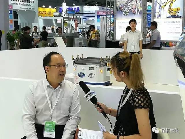 而作為國內(nèi)AGV中高端技術(shù)和市場發(fā)展方向的代表性企業(yè),昆船公司一如既往地受到國內(nèi)媒體的關(guān)注。中國中央電視臺的記者也來到昆船展臺,現(xiàn)場采訪了昆船智能公司總經(jīng)理姜榮奇。