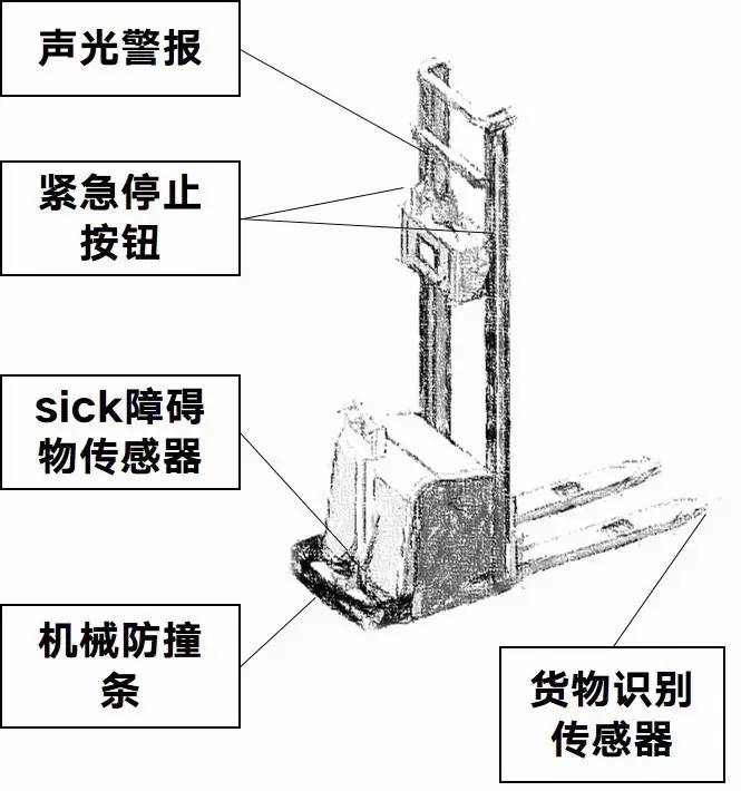 2、可通過(guò)設(shè)置3個(gè)SICK障礙物傳感器結(jié)合激光叉車AGV控制系統(tǒng),確保激光叉車AGV全方位行走安全。