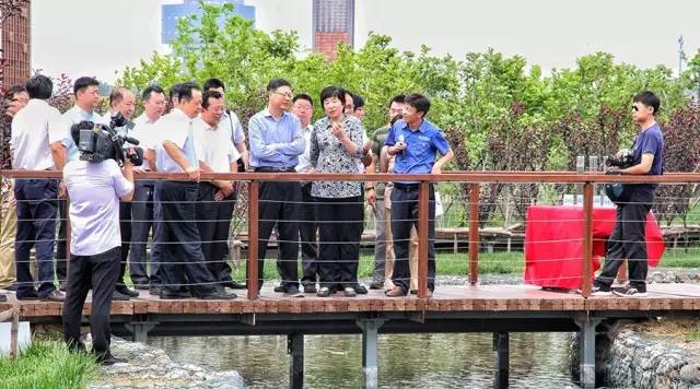 陳吉寧一行,詳細(xì)聽取了槐房再生水廠總體建設(shè)運行情況的匯報,步行查看了槐房再生水廠“一畝泉”濕地公園,并到MBR膜車間了解地下水廠工藝運行及裝備制造應(yīng)用情況。