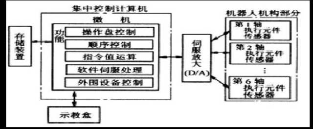 對(duì)于具有多自由度的工業(yè)機(jī)器人而言,集中控制對(duì)各個(gè)控制軸之間的藕合關(guān)系處理得很好,可以很簡(jiǎn)單的進(jìn)行補(bǔ)償。但是,當(dāng)軸的數(shù)量增加到使控制算法變得很復(fù)雜時(shí),其控制性能會(huì)惡化。而且,當(dāng)系統(tǒng)中軸的數(shù)量或控制算法變得很復(fù)雜時(shí),可能會(huì)導(dǎo)致系統(tǒng)的重新設(shè)計(jì)。與之相比,分布式結(jié)構(gòu)的每一個(gè)運(yùn)動(dòng)軸都由一個(gè)控制器處理,這意味著,系統(tǒng)有較少的軸間禍合和較高的系統(tǒng)重構(gòu)性。