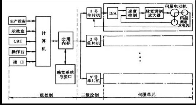 這種結(jié)構(gòu)中,子系統(tǒng)是由控制器和不同被控對(duì)象或設(shè)備構(gòu)成的,各個(gè)子系統(tǒng)之間通過(guò)網(wǎng)絡(luò)等相互通訊。分布式控制結(jié)構(gòu)提供了一個(gè)開(kāi)放、實(shí)時(shí)、精確的機(jī)器人控制系統(tǒng)。分布式系統(tǒng)中常采用兩級(jí)控制方式。