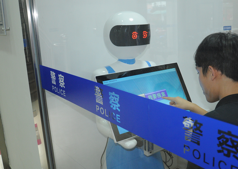 28日,由佛山市順德區(qū)公安局與廣東伊雪松機(jī)器人設(shè)備有限公司聯(lián)合開發(fā)的自助接報(bào)案筆錄機(jī)器人正式交付使用。該款機(jī)器人應(yīng)用了人工智能、語音識(shí)別等先進(jìn)技術(shù),能夠識(shí)別粵語及全國多地方言,為全省首創(chuàng),今后將在順德全區(qū)10個(gè)派出所推廣使用。筆錄機(jī)器人在保證接報(bào)案工作量的同時(shí),節(jié)省警力50%以上,得到了基層民警和報(bào)案市民群眾的歡迎和好評(píng)。
