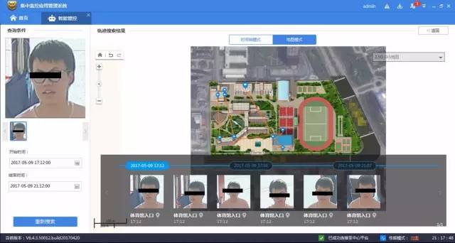 結合數(shù)據(jù)結構化以及可視化地圖,完成重點目標的人臉軌跡展示。通過軌跡研判,可分析目標在區(qū)域內的大致活動路線和特征,掌握其進出校園的活動規(guī)律。針對已經(jīng)布控的人臉或重點關注目標,通過人臉比對報警可及時掌握線索,并結合地圖完成指揮處置。