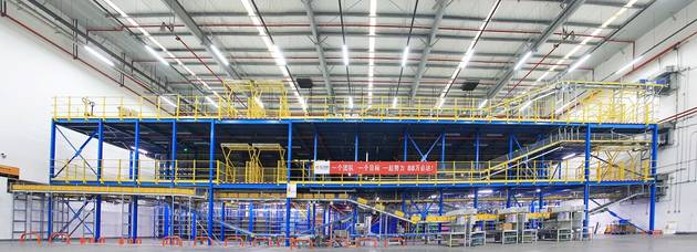 蘇寧引進(jìn)的全球最先進(jìn)的勝斐邇旋轉(zhuǎn)系統(tǒng)(SCS)的投入使用,可以實(shí)現(xiàn)按訂單全自動(dòng)揀貨,除最后從料箱取貨外無(wú)需人工操作,使得蘇寧物流的揀貨速度再提高7倍。蘇寧快遞可以將從揀配任務(wù)下發(fā)到裝車(chē)發(fā)貨的時(shí)間縮短到平均40分鐘。