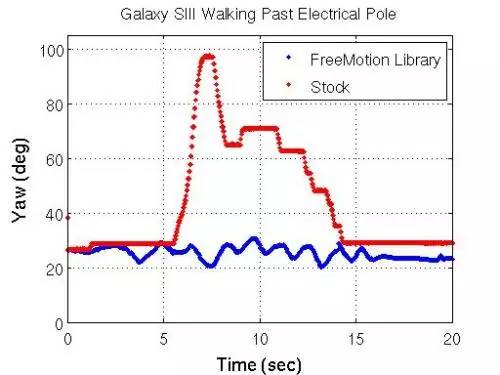 Galaxy SIII Walking Past Electrical Pole:Galaxy SIII經(jīng)過電線桿時(shí)的航向偏移