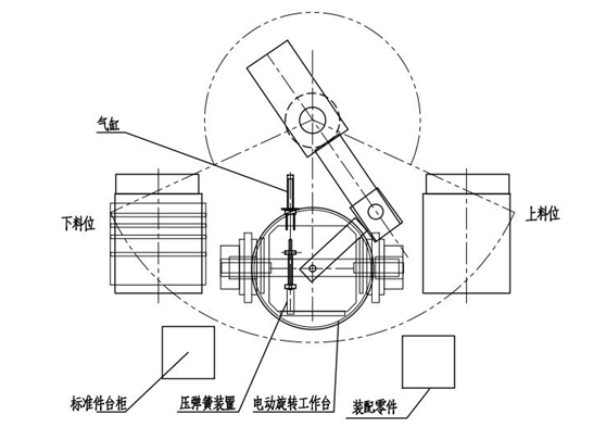 自動化工作臺配套裝配機械臂、自動化專機、回轉(zhuǎn)機構(gòu)等,裝配機械臂與專機協(xié)調(diào)運動,專機負責打孔、吹凈等各類機加工作;裝配機械臂根據(jù)中控室指令按照既定程序進行組裝;回轉(zhuǎn)機構(gòu)可以進行360°旋轉(zhuǎn)并可在任意位置鎖定,定位精度±0.1mm,方便機械臂全面組裝。