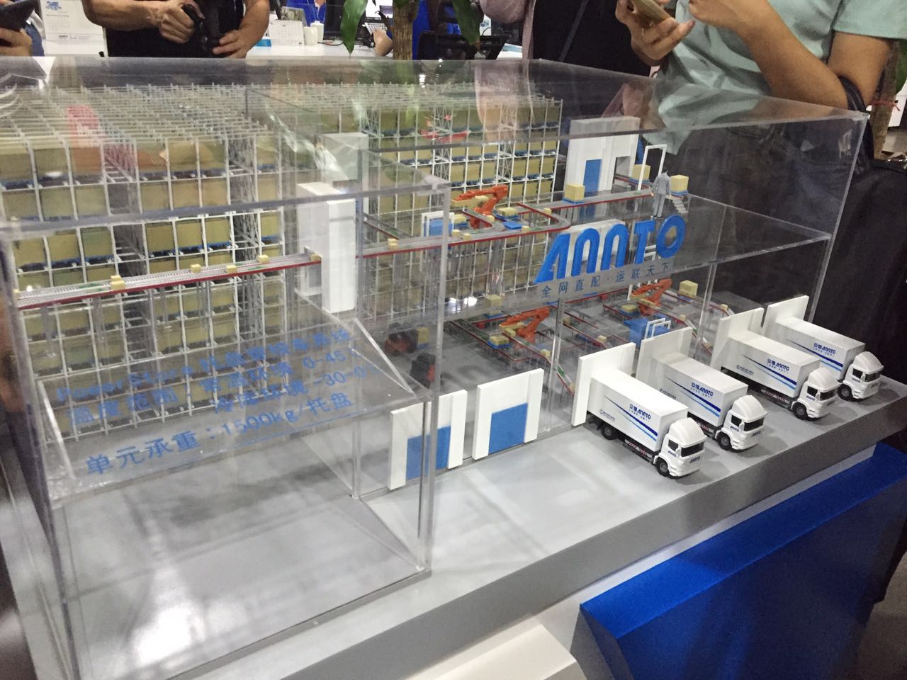 第一財經(jīng)記者在美的全球創(chuàng)新中心內(nèi)的安得智聯(lián)科技公司總部,看到了一個安得無人倉庫的模型。只見八層高的倉庫由許多整整齊齊的正方體架子構(gòu)成,通過自動化托盤,實現(xiàn)高密度存儲,比堆垛式存放的效率高三倍,總體可以承重1500公斤的托盤。