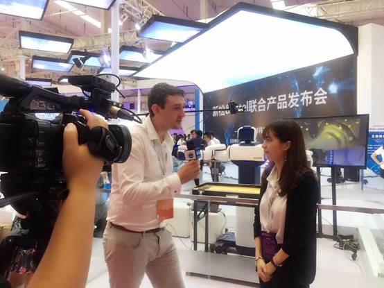 新華網(wǎng)采訪柔性協(xié)作機(jī)器人與AR技術(shù)應(yīng)用展示