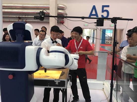 大會(huì)當(dāng)天的機(jī)器人論壇上,機(jī)器人的柔性化和人機(jī)協(xié)作的趨勢(shì)也被多次提及,尤其是協(xié)作機(jī)器人,甚為火爆。中科新松有限公司自主研發(fā)的柔性協(xié)作機(jī)器人是國(guó)內(nèi)首臺(tái)七自由度的協(xié)作機(jī)器人,自2015年工博會(huì)推出至今,已經(jīng)在各大龍頭企業(yè)通過了穩(wěn)定性和可靠性驗(yàn)證,目前已經(jīng)進(jìn)入小批量量產(chǎn)階段。