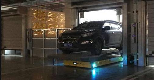 AGV泊車機器人系統(tǒng),只要把車開進(jìn)一個特殊的獨立車庫,將車輛平穩(wěn)地開到中間車架上后,司機按提示鎖車離開,隨后會有帶著輪子的智能傳送托盤將車架整體搬運至后方車庫,機器人系統(tǒng)可以完成路徑導(dǎo)航、定位停放,誤差在兩毫米內(nèi)。