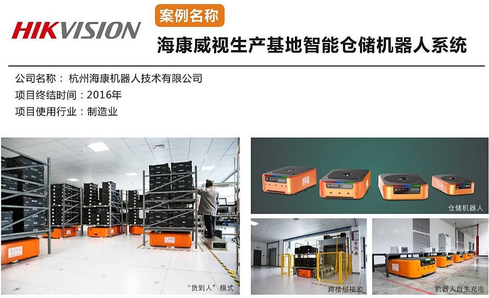 2014年6月海康威視正式啟動安防產(chǎn)業(yè)基地建設(shè)項目,并于2015年竣工。為提高倉儲效率和訂單處理能力,新基地引進(jìn)了智能倉儲及廠內(nèi)物流解決方案,共投入使用智能移動機(jī)器人超800臺,覆蓋總面積達(dá)12萬平方米。項目由杭州??禉C(jī)器人技術(shù)有限公司提供并實施,方案涵蓋倉庫、庫間和產(chǎn)線等生產(chǎn)及倉儲模塊,實時管理超8萬條SKU,累計管理物料30萬條。