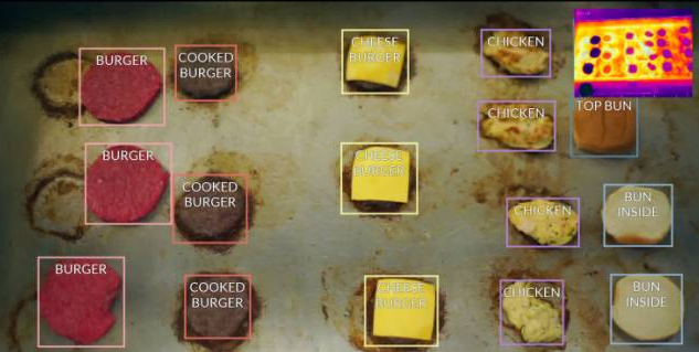 Flippy基于其搭載的熱量傳感器、3D攝像頭等感知設(shè)備,通過(guò)機(jī)器學(xué)習(xí)識(shí)別每一樣食材,及其在高溫煎烤時(shí)不同階段的狀態(tài)。所以通過(guò)“觀察”食材的煎烤情況,F(xiàn)lippy就可以同步使用機(jī)器臂為食材翻面,直至烤到適合的狀態(tài),再一一裝盤(pán)交給漢堡廚師在下一個(gè)環(huán)節(jié)制作出漢堡包的成品。
