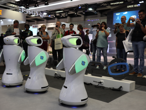 今年IFA展會(huì)現(xiàn)場(chǎng),不僅吸引了三星、博世、西門子、索尼等國(guó)際知名品牌參展,也吸引了海爾、華為、美的、創(chuàng)維、旗瀚科技等中國(guó)企業(yè)將各自的研發(fā)成果帶到國(guó)際舞臺(tái)上展示。被《日本經(jīng)濟(jì)新聞》“點(diǎn)名關(guān)注”的智能服務(wù)機(jī)器人中,就有旗瀚科技出品的三寶機(jī)器人。