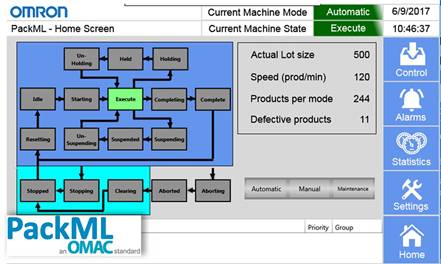 歐姆龍是PackML(Packaging Machine Language)組織的成員,我們可以為客戶提供PackTagstructure, HMI 模板和使用案例。