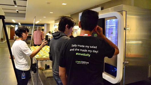 作為一家人性化的IT公司,twitter會定期邀請大廚在公司的自助餐廳做飯,改善員工伙食,近期,twitter請來了新的沙拉制作“大廚”Sally,它卻是個機器人——初創(chuàng)公司Chowbotics的自動料理機。