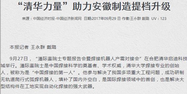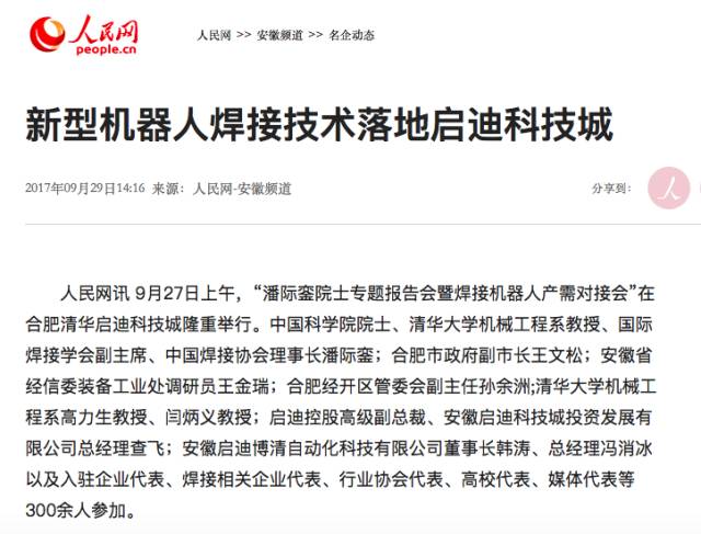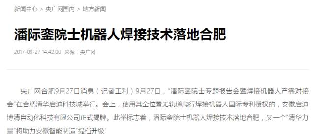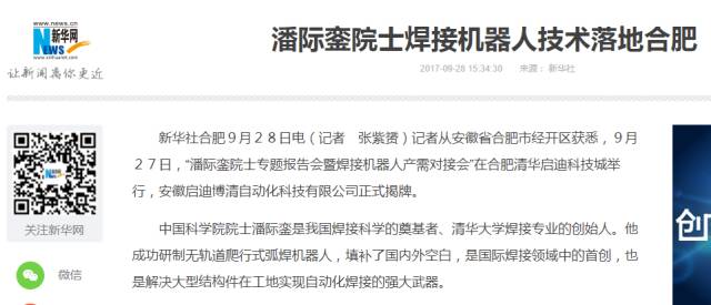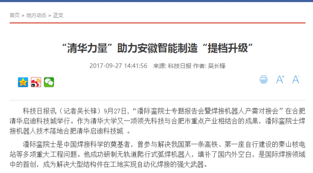 9月27日,"潘際鑾院士專題報(bào)告會(huì)暨焊接機(jī)器人產(chǎn)需對接會(huì)"在合肥清華啟迪科技城隆重舉行。報(bào)告會(huì)上,潘際鑾院士圍繞"大型結(jié)構(gòu)焊接自動(dòng)化" 主題發(fā)表精彩學(xué)術(shù)演講。與此同時(shí),作為清華大學(xué)又一項(xiàng)領(lǐng)先科技與合肥市重點(diǎn)產(chǎn)業(yè)相結(jié)合的成果,安徽啟迪博清自動(dòng)化科技有限公司正式成立,潘際鑾院士焊接機(jī)器人技術(shù)落地合肥清華啟迪科技城。