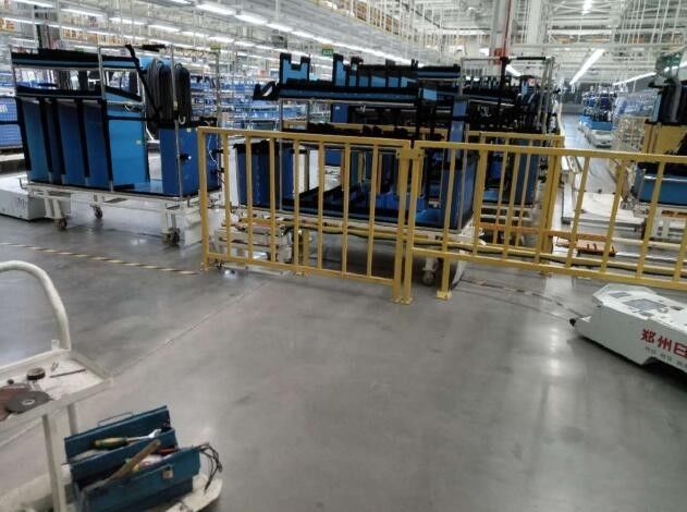 總裝車間AGV導入項目,系統(tǒng)采用AGV小車實現(xiàn)車間內(nèi)物料配送自動化。總裝二車間各物料配送循環(huán)圈,包含內(nèi)飾線、底盤線(承載/非承載)、發(fā)動機分裝線、門線、底盤內(nèi)飾線、前后縣懸分裝、玻璃分裝、CPM分裝等線體的配送系統(tǒng)建設,以及系統(tǒng)聯(lián)網(wǎng)、與工程管理系統(tǒng)的連鎖控制等附屬工程。投入機器人數(shù)量170臺,年工作時間5000小時,10.5+10.5小時兩班體制下,輸送線具有年生產(chǎn)1500000臺整車的能力。