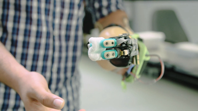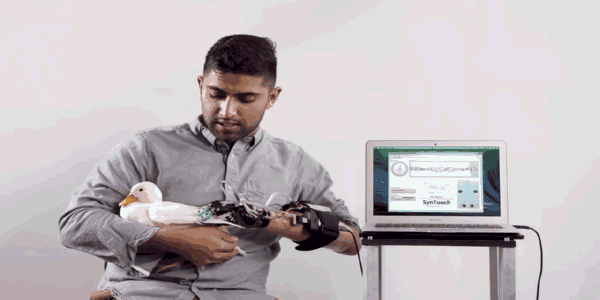 那么,這到底有什么用呢?SynTouch發(fā)布了多個視頻用來解釋,比如佩戴機(jī)械臂的工作人員用機(jī)器指尖撫摸兔子、鵝等動物,新技術(shù)讓指尖可以感受到動物柔軟的毛皮、從而自動判斷應(yīng)有的力度,動物沒有絲毫不適感。