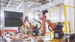 在貨物入庫(kù),打包等環(huán)節(jié),京東無(wú)人倉(cāng)配備了3種不同型號(hào)的六軸機(jī)械臂,應(yīng)用在入庫(kù)裝箱、揀貨、混合碼垛、分揀機(jī)器人供包4個(gè)場(chǎng)景下。